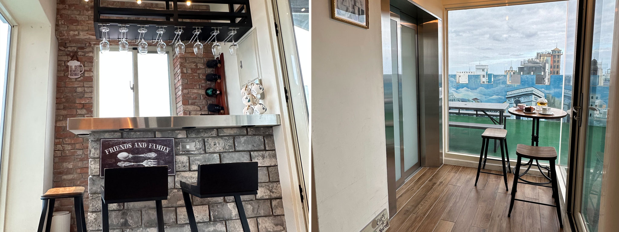 在民宿頂樓還有吧台、休閒娛樂區,室外露天陽台看海無敵海景,看日出夜晚數星星好療癒,首選的渡假民宿。